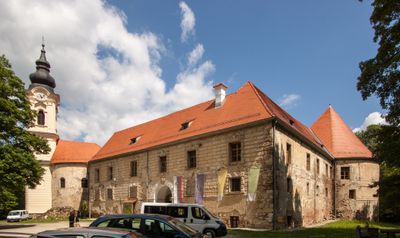 Le chateau de Grad est une forteresse medievale en Slovenie avec une structure pentagonale s'etendant sur plusieurs niveaux. L'ensemble compte des couloirs en arcades, des murs de pierre epais et est le plus grand complexe de chateaux du pays.