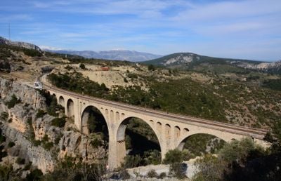 Le viaduc de Varda est un pont ferroviaire en pierre à Karaisalı, en Turquie, qui domine la vallée de la rivière Çakıt. Onze arches reliées soutiennent les voies et forment une série d'ouvertures étagées qui descendent vers le fond de la vallée.