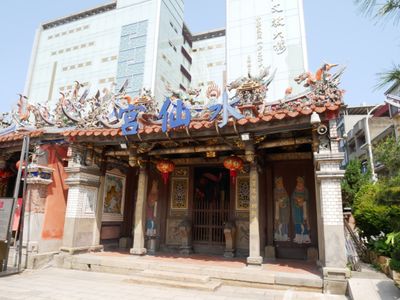 Le temple Shuixian de Hsinchu est un temple chinois situé dans le district nord de la ville de Hsinchu qui présente une architecture traditionnelle avec des sculptures complexes et des ornements élaborés à l'intérieur et à l'extérieur. Le bâtiment affiche des éléments caractéristiques de la conception classique des temples chinois, notamment des avant-toits décorés, des colonnes de soutien et des ornements muraux sophistiqués.