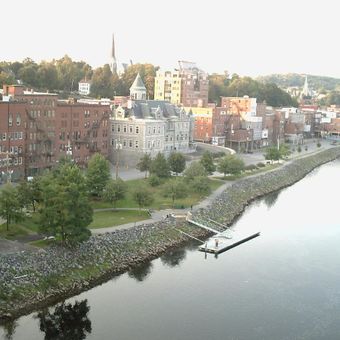 La ville s'étend le long du fleuve Kennebec, avec des bâtiments gouvernementaux sur la rive ouest et des zones résidentielles sur la rive est.