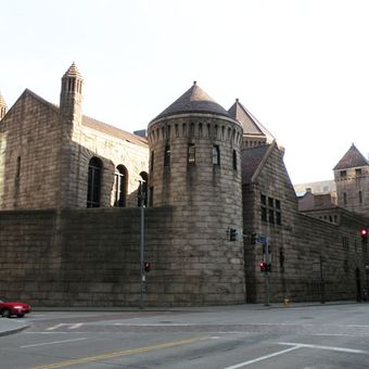 L'Old Allegheny County Jail est une prison du 19e siècle située au centre-ville de Pittsburgh avec des murs de granit massif et des arches arrondies. Le bâtiment affiche des caractéristiques du Renouveau roman avec une rotonde centrale et quatre ailes connectées entourant une cour intérieure.