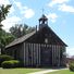 L'église de la Sainte-Famille présente des murs en bois construits avec de lourdes poutres de noyer taillées en blocs rectangulaires et remplies de moellons.