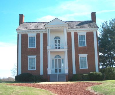 Le site historique de la Maison Chief Vann présente des murs en briques rouges, des ornements blancs et plusieurs cheminées caractéristiques de l'architecture fédérale.