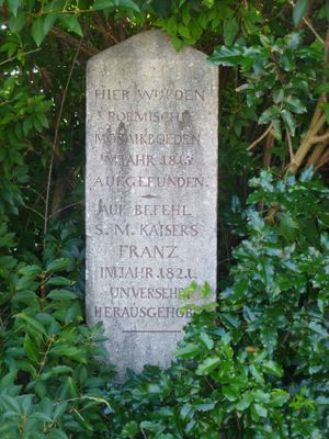 Une remarquable mosaique de sol depeignant des scenes mythologiques a ete decouverte ici et transportee plus tard dans un musee a Vienne. Cette oeuvre d'art ornementale donne un apercu du monde sophistique des Romains riches vivant dans cette province lointaine.