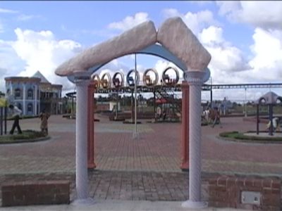Le parc présente un bâtiment administratif de deux étages avec des entrées en forme d'animaux et une sortie conçue comme un poulpe.
