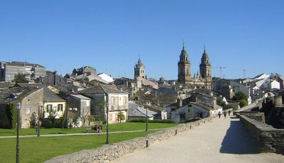Lugo est une ville du nord-ouest de la Galice, en Espagne, située sur le fleuve Miño et entourée de murailles romaines qui encerclent tout le centre historique. À l'intérieur des remparts, des rues étroites s'étendent avec des places pavées, des églises de différentes époques et des maisons d'habitation regroupées autour de la cathédrale et de l'ancien hôtel de ville.