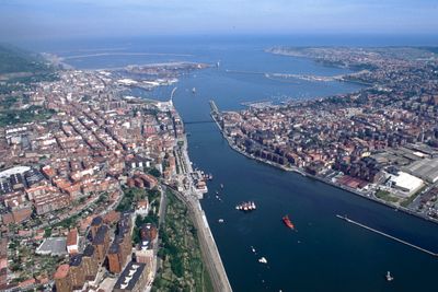 Le Puente Colgante, ouvrage de 1893, relie les deux rives de l'estuaire et figure au Patrimoine mondial depuis 2006. Les passagers traversent l'eau dans une nacelle suspendue sans perturber la circulation fluviale.