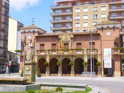 Calahorra est une commune de La Rioja, Espagne, implantée au confluent de l'Èbre et du Cidacos et conservant des vestiges archéologiques de l'occupation romaine. L'agglomération s'étend sur un terrain plat et légèrement vallonné, avec des champs et des jardins qui rejoignent les rives des deux cours d'eau.