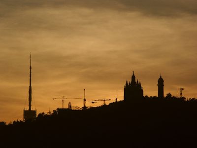 Le sommet du mont Tibidabo atteint une altitude de 512 mètres et offre des vues sur Barcelone et la Mer Méditerranée depuis sa position.