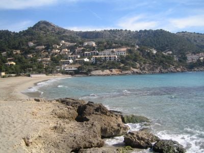 La rivière Torrente Canyamel traverse la ville et rejoint la Méditerranée sur le côté gauche de la plage.