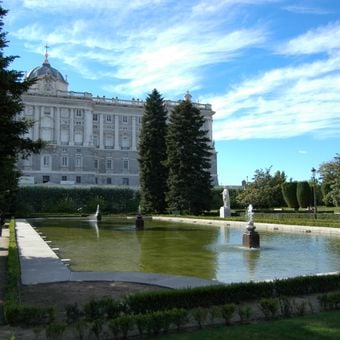 Les Jardins de Sabatini constituent un espace vert formel à côté du Palais Royal de Madrid, conçu dans un style classique combinant les traditions françaises et espagnoles, déployés sur trois terrasses en gradins. La disposition présente des motifs géométriques stricts avec des haies taillées, des fontaines et des bassins ornementaux arrangés en parfaite symétrie.
