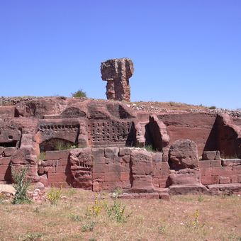 Tiermes est un site archéologique romain près de Montejo de Tiermes en Espagne avec de nombreuses structures taillées directement dans la roche de grès. Les vestiges montrent des maisons, des rues, des bains thermaux et des murs défensifs qui révèlent la vie quotidienne et les préoccupations de sécurité des anciens habitants.