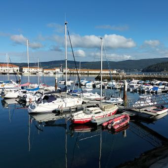 Le port de plaisance de Marín s'étend le long de la côte sud-est de la baie de Pontevedra, protégé par l'île d'Ons.