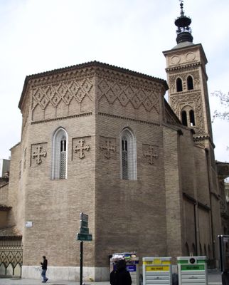 L'Iglesia parroquial de San Miguel de los Navarros est une église paroissiale catholique située dans le centre de Zaragoza, construite dans le style mudéjar. La structure comprend une seule nef divisée en trois sections, une abside polygonale et un clocher carré surmonté d'une flèche du 18eme siècle caractéristique de l'architecture régionale.