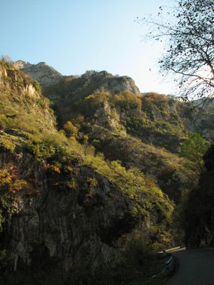 Les formations calcaires verticales connues sous le nom d'El Frailón et Les Monxines créent des passages étroits où la rivière et la route se disputent l'espace.