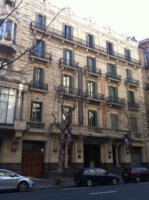 Casa Garriga Nogués est un immeuble d'habitation moderniste situé dans le Dreta de l'Eixample à Barcelone avec une facade de cinq étages combinant des éléments classiques et baroques. Le balcon principal du premier étage est soutenu par quatre colonnes sculptées, et l'intérieur présente des escaliers en marbre et des fenêtres en verre décoratif réalisées par des artisans qualifiés.