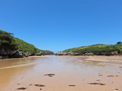 Playa de Poo est une plage de sable à Llanes avec du sable blanc s'étendant le long d'une petite crique formée par la rivière Vallina. Le fleuve coule le long du côté droit de la plage avant de rejoindre la mer Cantabre.