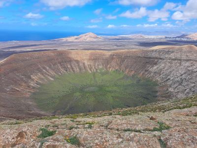 La section nord du bord du cratère offre des vues directes sur le Parc National de Timanfaya, avec un point de vue séparé nommé Risco Quebrado.