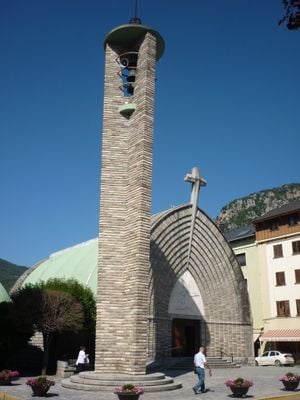 Santa Maria del Pont de Suert s'élève à 851 mètres d'altitude, présentant des éléments architecturaux de construction religieuse moderne.