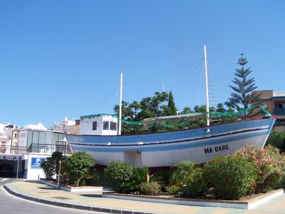 La Dorada se dresse comme une réplique grandeur nature d'un bateau de pêche traditionnel à l'entrée du centre-ville de Nerja.