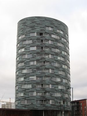 Ikituuri est un immeuble d'appartements elliptique revetu de cuivre dans le Village Etudiant de Turku qui s'eleve sur 12 etages jusqu'a environ 43 metres de haut. Les appartements sont disposés autour d'un escalier central, chaque etage contenant huit unites de 30 a 45 metres carres.