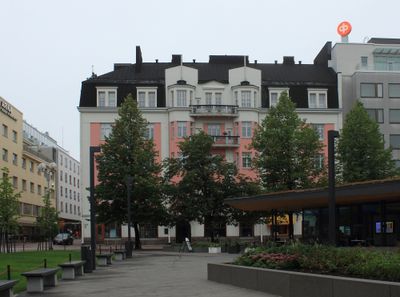 L'architecte Harald Andersin a conçu le bâtiment en 1910 comme une structure commerciale et résidentielle solide. Les étages supérieurs ont subi des dégâts lors des bombardements de la Seconde Guerre mondiale sur la ville en 1940.