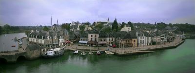 Auray est une commune du département du Morbihan en Bretagne, située dans le nord-ouest de la France avec des connexions aux communes voisines par routes et chemins de fer. L'intérêt principal pour les visiteurs se concentre sur le quartier portuaire de Saint-Goustan, où les bâtiments de pierre médiévale bordent la rivière et où de petits bateaux mouillent dans l'eau.