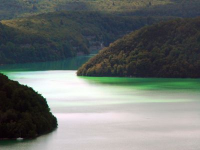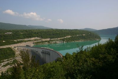 Le lac de Vouglans s'étend sur 30 kilomètres dans le département du Jura, atteignant des profondeurs de 100 mètres et stockant 605 millions de mètres cubes.