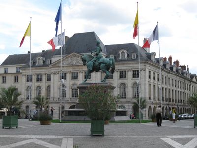 La place du Martroi couvre environ 9200 mètres carrés dans le centre d'Orléans et présente une statue équestre de Jeanne d'Arc entourée de bâtiments français du XVIIIe siècle aux façades classiques.