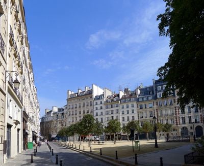 Le roi Henri IV a initié la construction de la Place Dauphine en 1607, établissant 32 maisons identiques en pierre blanche et brique.