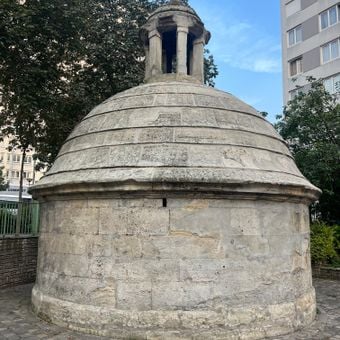 Construit en 1613, cet ouvrage servait de point d'inspection pour le réseau d'eau de Belleville qui alimentait les fontaines parisiennes.
