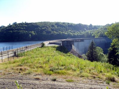 Le barrage, construit entre 1953 et 1958, a remplacé un ancien moulin appelé La Gravette, qui repose maintenant sous les eaux du réservoir.
