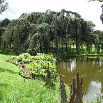 Le domaine de 13 hectares comprend plus de 500 espèces d'arbres et arbustes disposés autour d'une pièce d'eau centrale avec une île et des ponts.