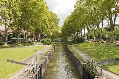 Le Canal de Brienne s'étend sur 1.560 mètres à travers Toulouse, reliant la Garonne au Canal du Midi au point de jonction des Ponts Jumeaux.