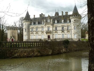 Le château de Nieuil présente des façades Renaissance et des tours rondes, entouré par des douves remplies d'eau et un parc aux arbres centenaires.