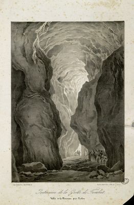La grotte s'étend à travers une grande salle menant à une large galerie, avec deux entrées superposées orientées vers le nord.