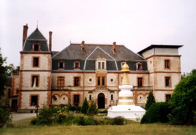 L'Institut Vajra Yogini occupe un château dans la région du Tarn, avec des salles de méditation et des espaces d'enseignement bouddhiste.