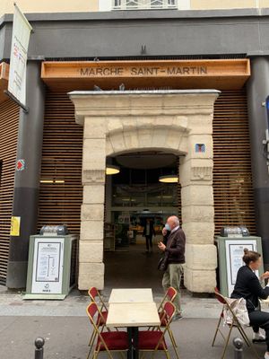 La structure en fer et en verre du Marché Saint-Martin abrite de nombreux commerçants proposant des produits frais, viandes, fromages et spécialités.