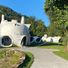 Le Museumotel comprend neuf chambres conçues comme des bulles construites en béton projeté sur une armature métallique, formant un arc sur une île de la rivière La Plaine.
