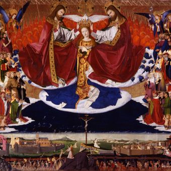 Le retable du Couronnement de la Vierge, peint par E. Quarton entre 1453-1454, représente la vision théologique du monde chrétien.