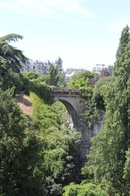 Pont des Suicidés, Pont en pierre au parc des Buttes-Chaumont, France.