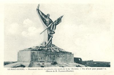 Le mémorial symbolise la résistance française, avec une inscription sur sa base indiquant 'Ils n'ont pas passé' pour commémorer la détermination des défenseurs.
