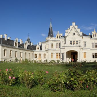Le Manoir Nádasdy est un château du 19e siècle avec des toits pentus, des cheminées en brique ornementées et un décor d'inspiration Tudor sur ses façades. L'intérieur contient des pièces lambrisées, de hautes fenêtres aux carreaux en losange et plusieurs grandes salles de réception conçues pour les rassemblements formels.