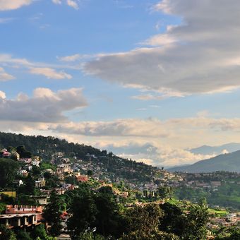 Almora est une localité du district d'Almora dans l'Uttarakhand, s'étendant le long d'une crête montagneuse dans la partie de Kumaon de l'Himalaya. Le tracé suit le terrain avec des chemins étroits traversant entre des blocs résidentiels et de petites boutiques.