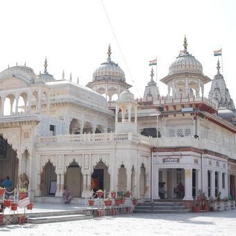 Shri Mahavirji est une structure religieuse dans le district de Karauli au Rajasthan, bâtie en grès et marquée par des sculptures détaillées sur ses surfaces. Le complexe abrite plusieurs salles à colonnes et des sanctuaires plus petits où les fidèles prient et méditent.