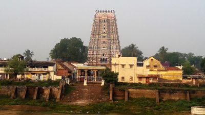 Le temple Adhi Ratneswarar possède une tour à neuf niveaux atteignant 40 mètres avec des peintures à l'huile illustrant la mythologie hindoue.