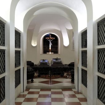 La Crypte Ducale est une chambre funeraire situee sous la Cathedrale Saint-Etienne a Vienne qui abrite les restes de membres de la dynastie des Habsbourg. L'espace contient de nombreux sarcophages en pierre et des conteneurs metalliques disposes dans ses chambres interieures.