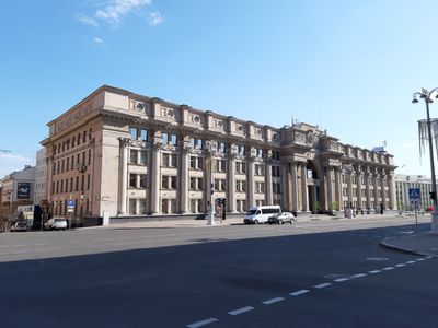 Les architectes Uladzimir Karoĺ et Abram Duchan ont achevé cet édifice monumental en 1953 pendant la reconstruction d'après-guerre de Minsk.