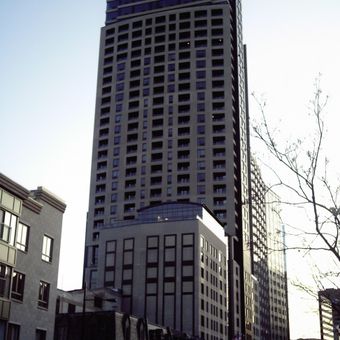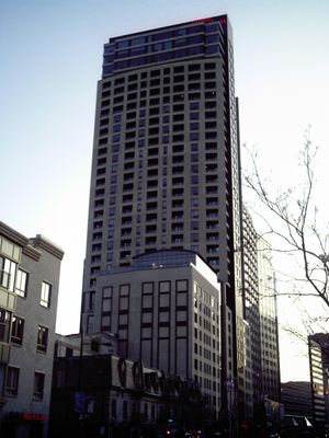 Le 400 Sherbrooke Ouest s'élève à 112,5 mètres de hauteur avec 37 étages d'unités résidentielles au centre du quartier des affaires de Montréal.