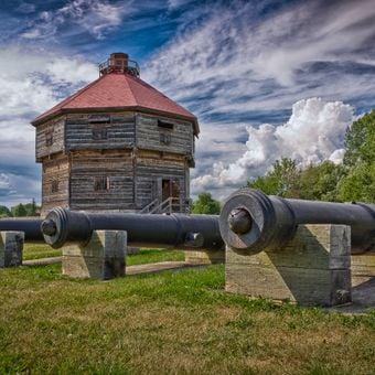 Le site historique, situé à 40 kilomètres au sud-ouest de Montréal au 308a River Road, conserve une collection d'artéfacts militaires et présente une casemate reconstruite de 1813.